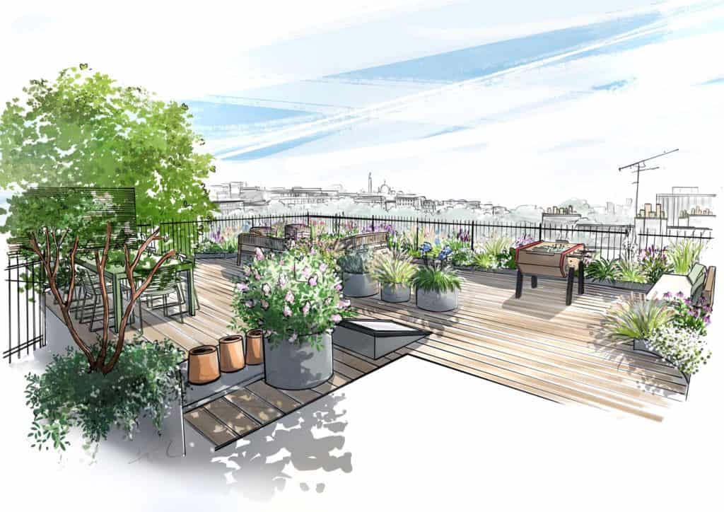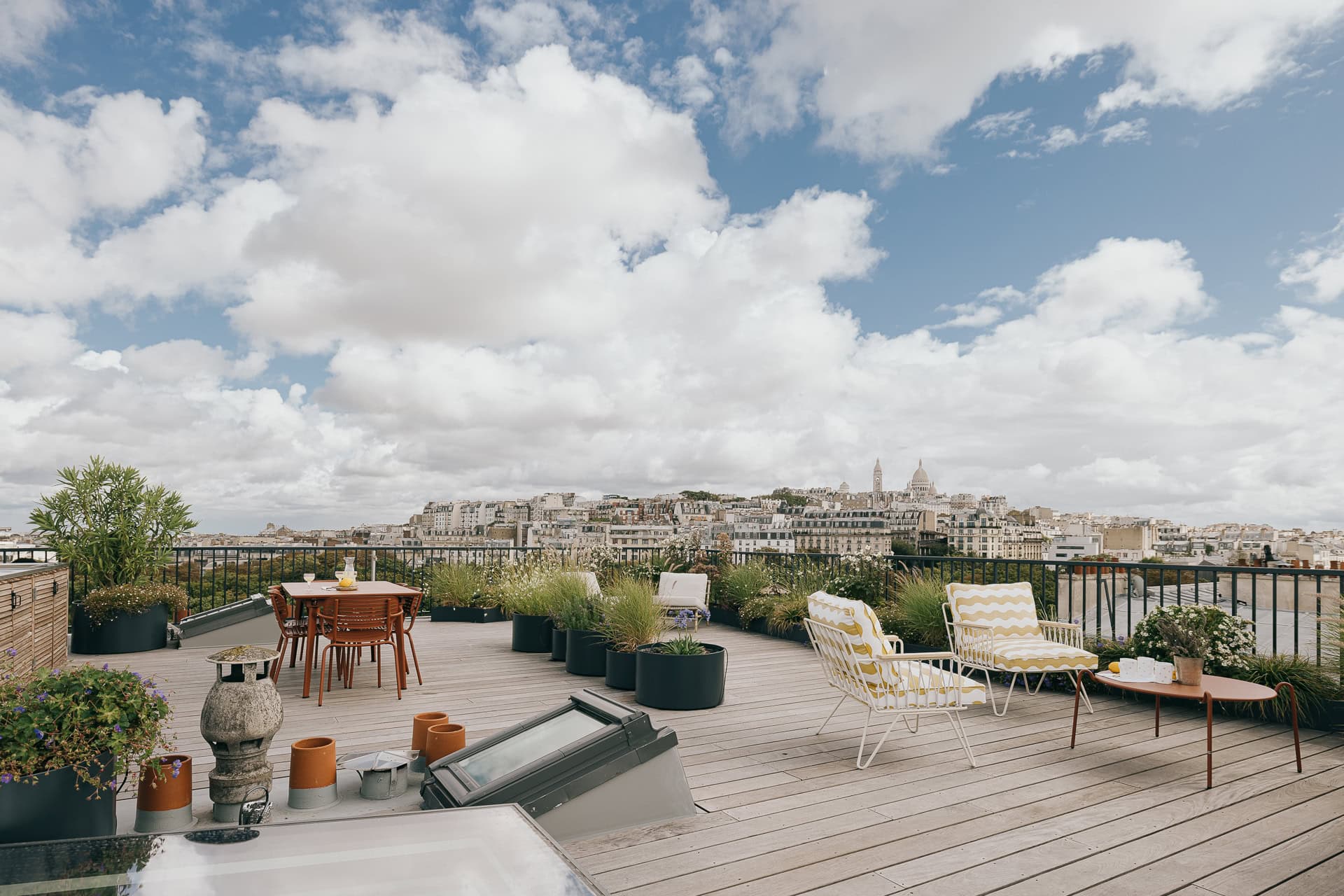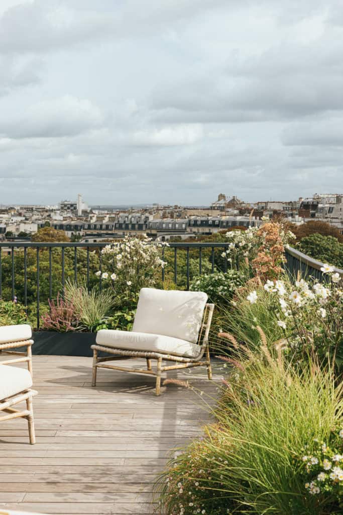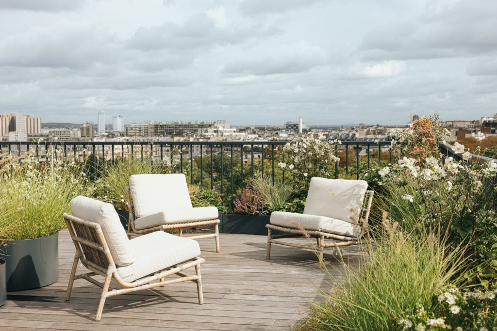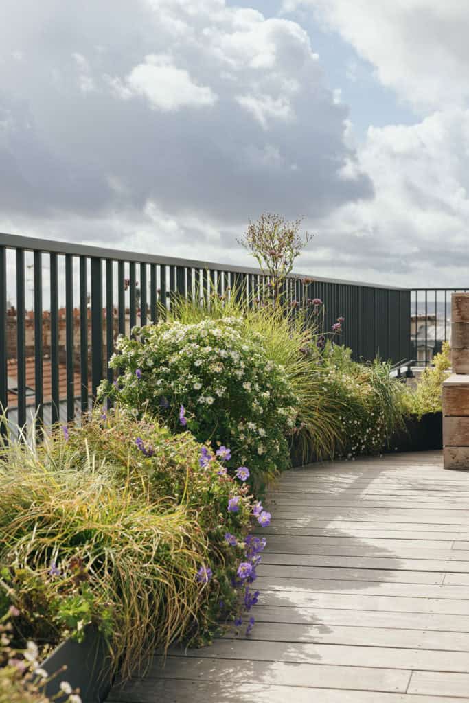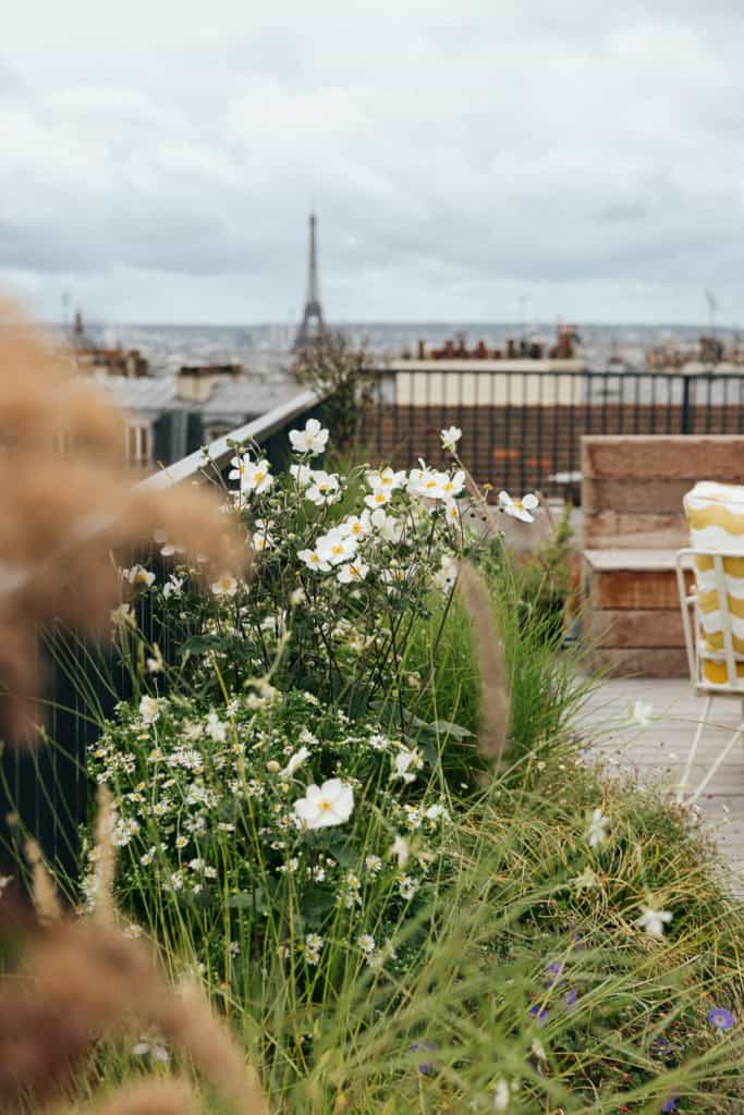 Ce toit technique est devenu une véritable terrasse à vivre, un vrai jardin surplombant la ville.